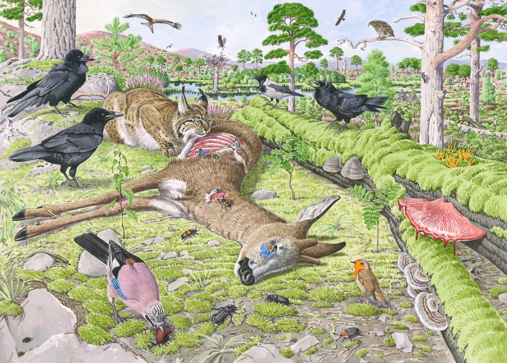 Lynx also increase the supply of large carcasses – currently scarce in Scotland – recycling key nutrients and providing an important year-round food source for many other species.